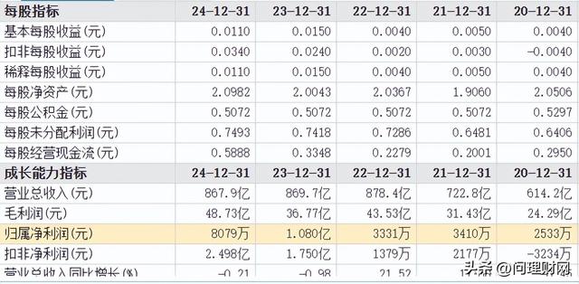 业绩方面,2022年至2024年公司实现营收分别为878.4亿元、869.7亿元、867.9亿元,同期实现净利润分别为3331万元、1.080亿元、8079万元……